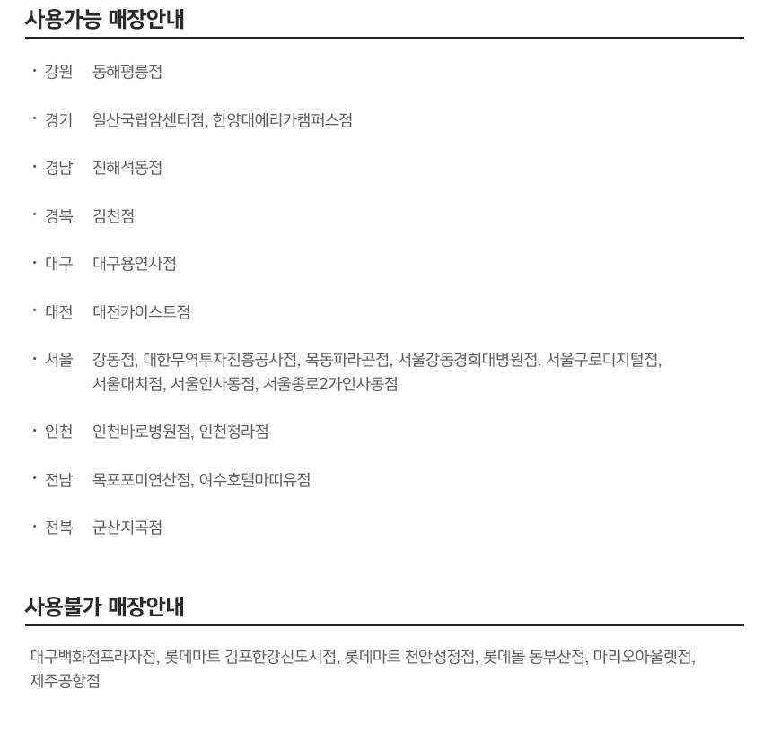 - · 유효기간 : 상품별 상이(상품 별 상세정보 또는 이용안내 내 유효기간 확인)